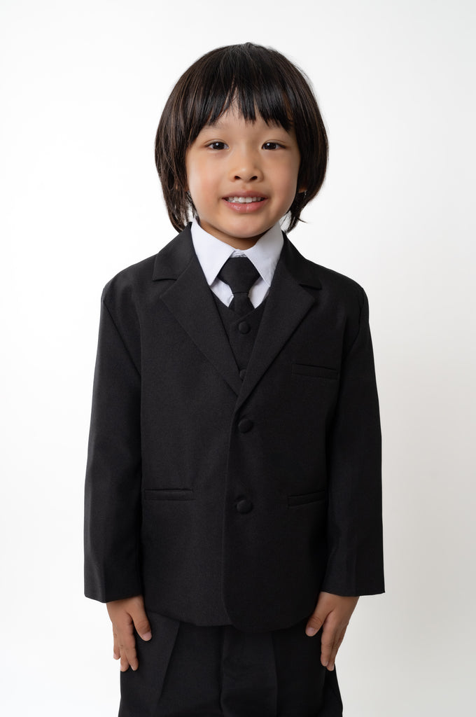 This sleek kids’ suit is a standout choice for weddings, and is also perfect for ring bearers or any special formal occasion.