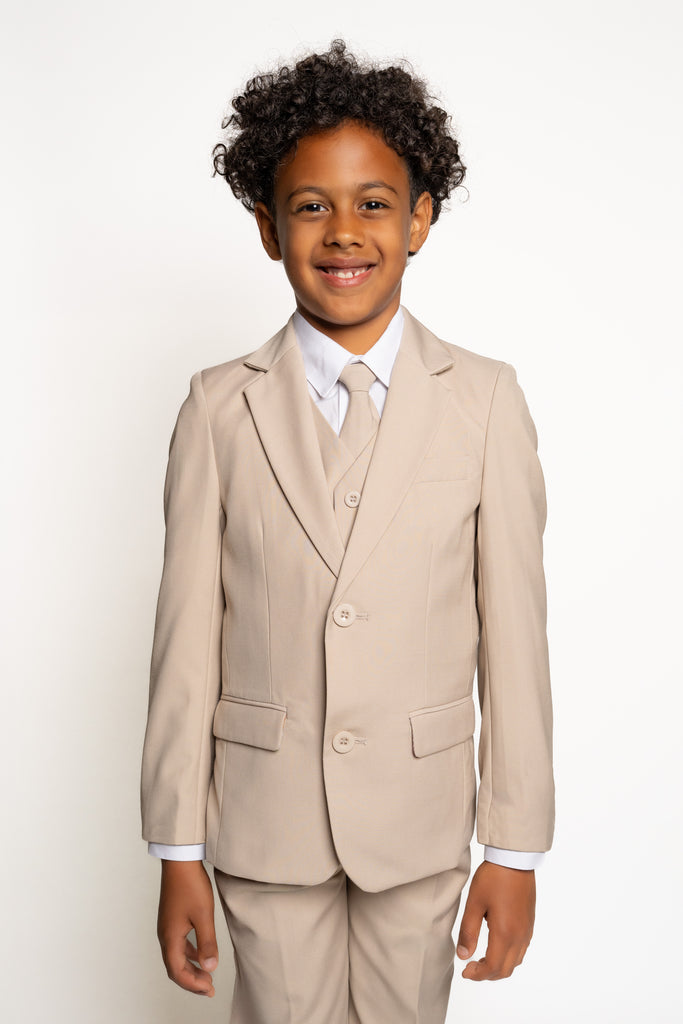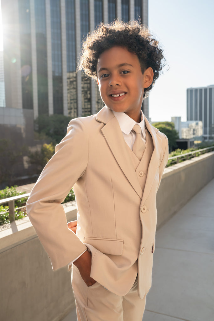 This sleek kids’ suit is a standout choice for weddings, and is also perfect for ring bearers or any special formal occasion.