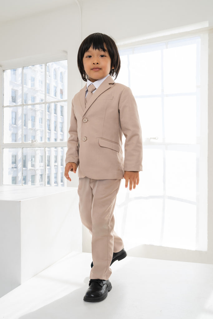 This sleek kids’ suit is a standout choice for weddings, and is also perfect for ring bearers or any special formal occasion.